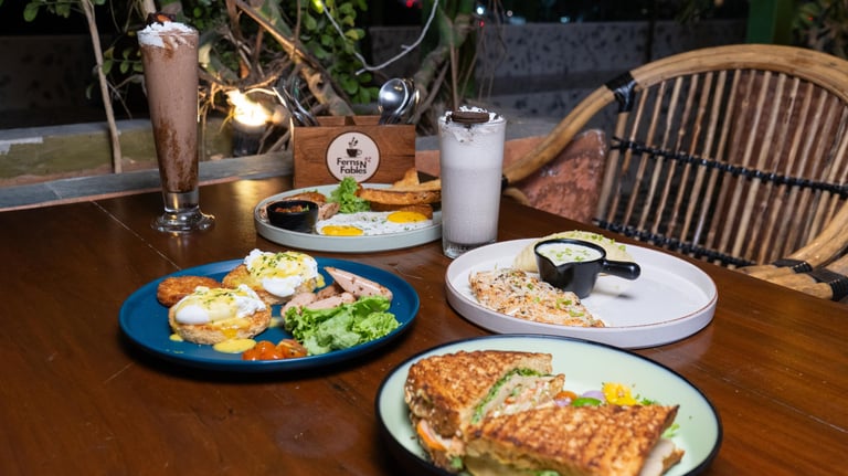 At Ferns N Fables, we believe dining is more than just eating — it’s an experience. Inspired by nature and crafted with passion, our café blends lush, green surroundings with fresh, wholesome, and indulgent flavors. Whether you’re here for a quiet coffee, a pizza night with friends, or a refreshing salad bowl, every dish is made to delight both your taste buds and your mood.
